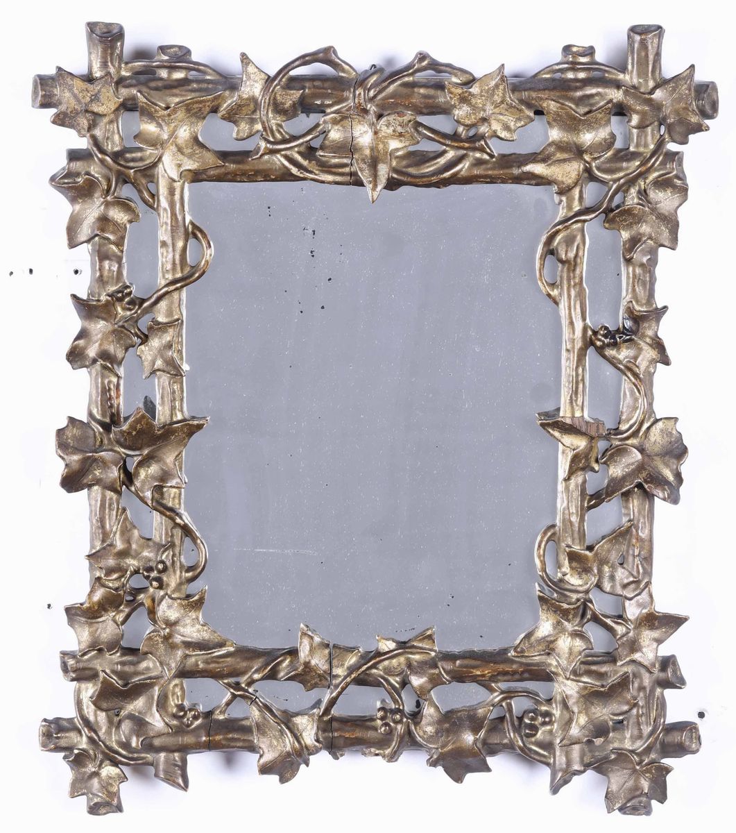 Specchiera con cornice in legno intagliato e dorato a foggia di tralci di vite, XIX secolo