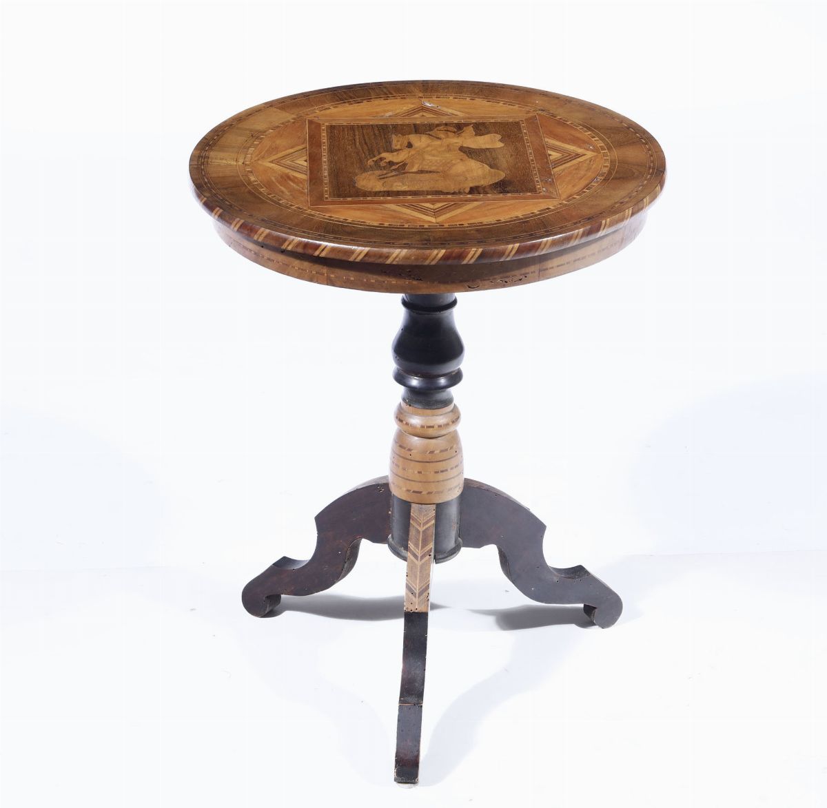 Tavolino impiallacciato ed intarsiato, XIX secolo