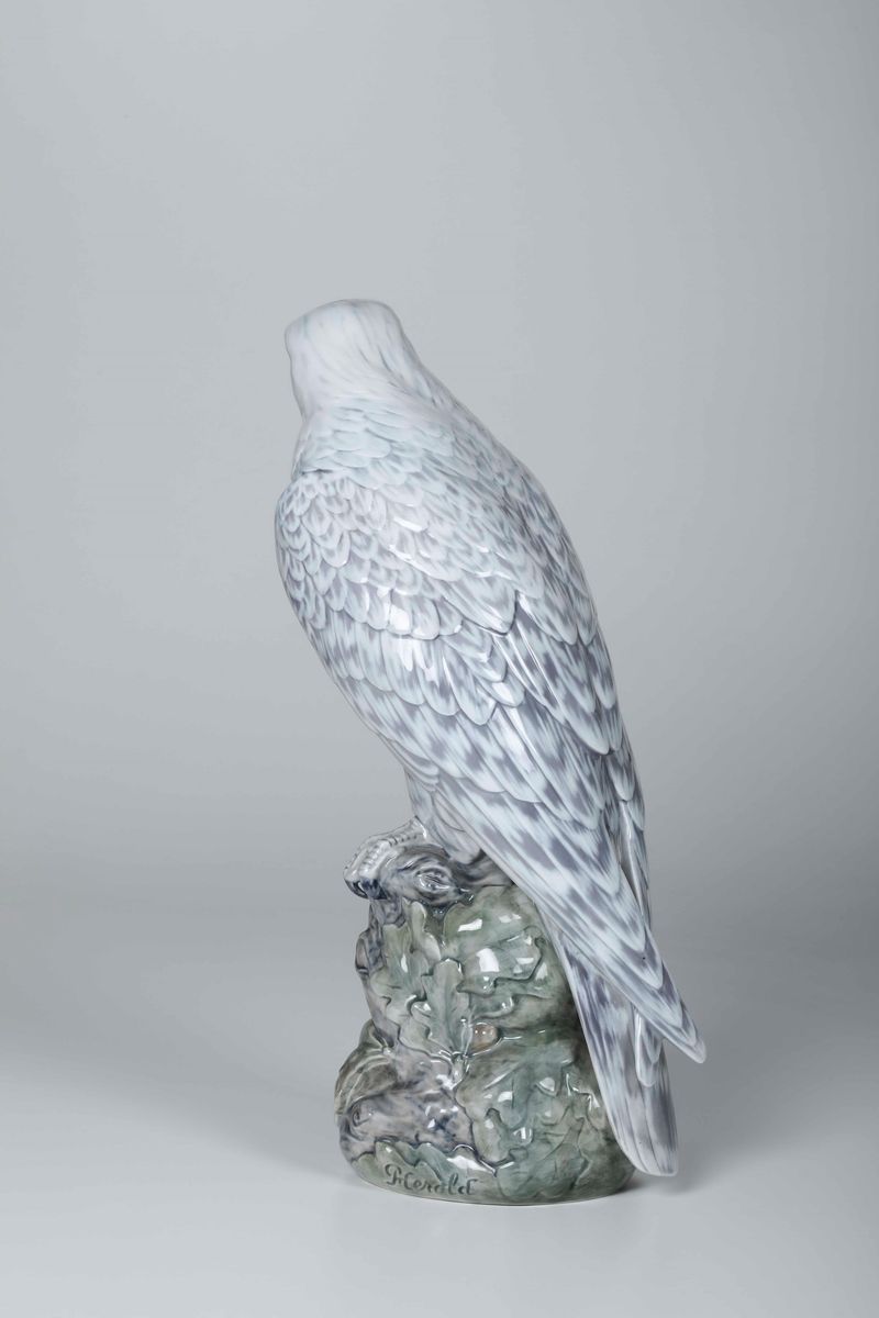 Grande scultura di falco Danimarca, Manifattura Royal Copenaghen, XX secolo