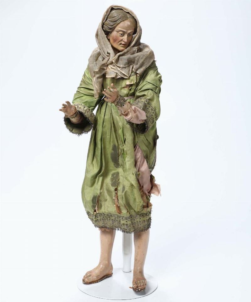 Figura femminile in legno e imbottitura, Napoli XVIII-XIX secolo