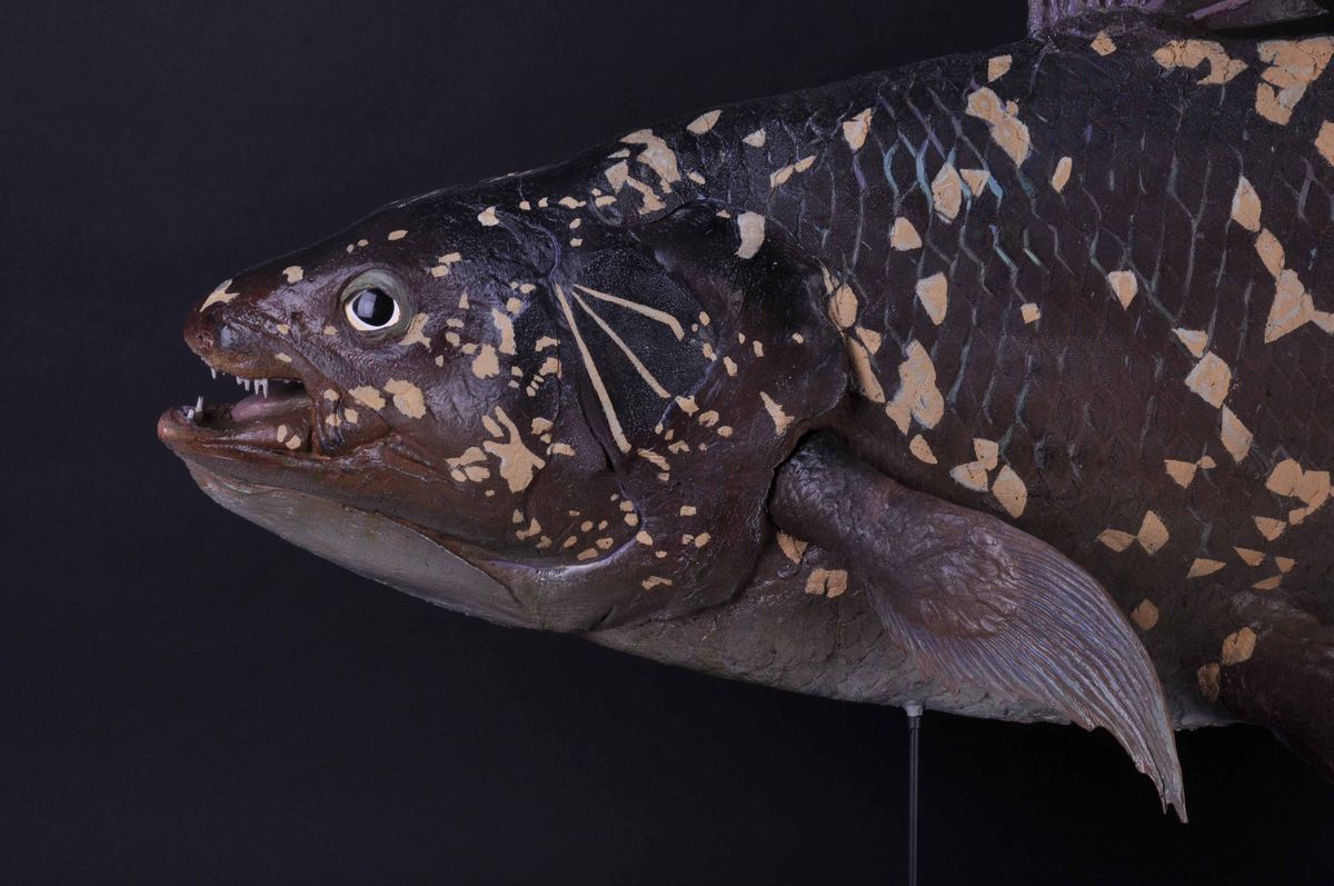 Replica di esemplare di Latimeria chalumnae rinvenuto nelle acque del canale di Mozambico nei primi anni 2000.