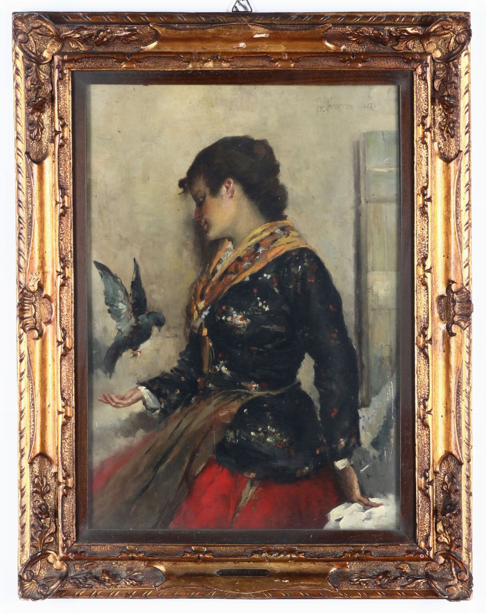 Egisto Lancerotto (1847-1916), copia da Figura femminile con colombi