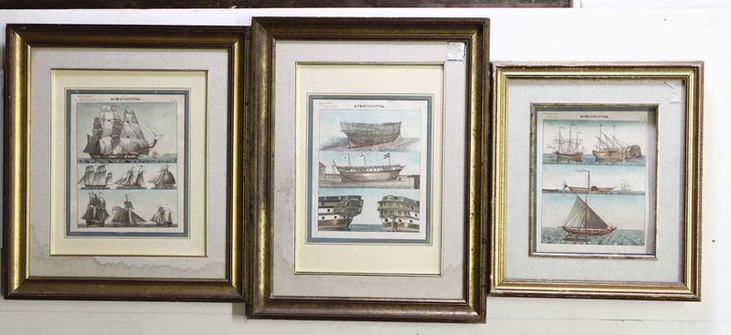Lotto di 13 tra stampe e riproduzioni a soggetto marinaro
