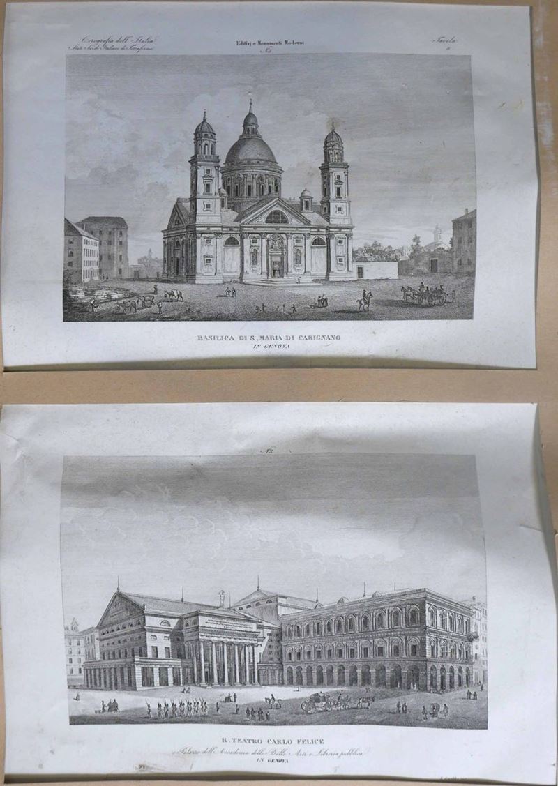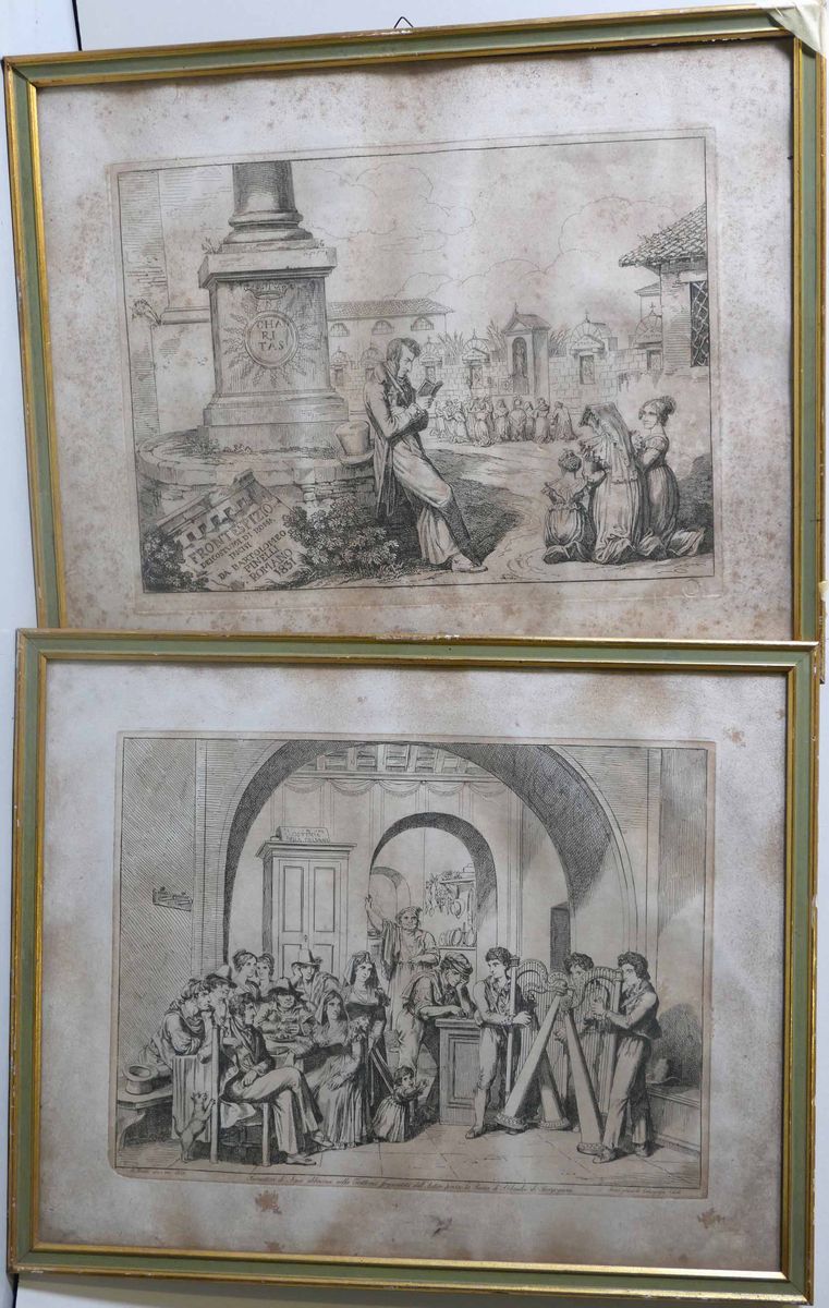 Lotto di 19 incisioni e stampe varie epoche e soggetti diversi tra cui 2 di Piranesi