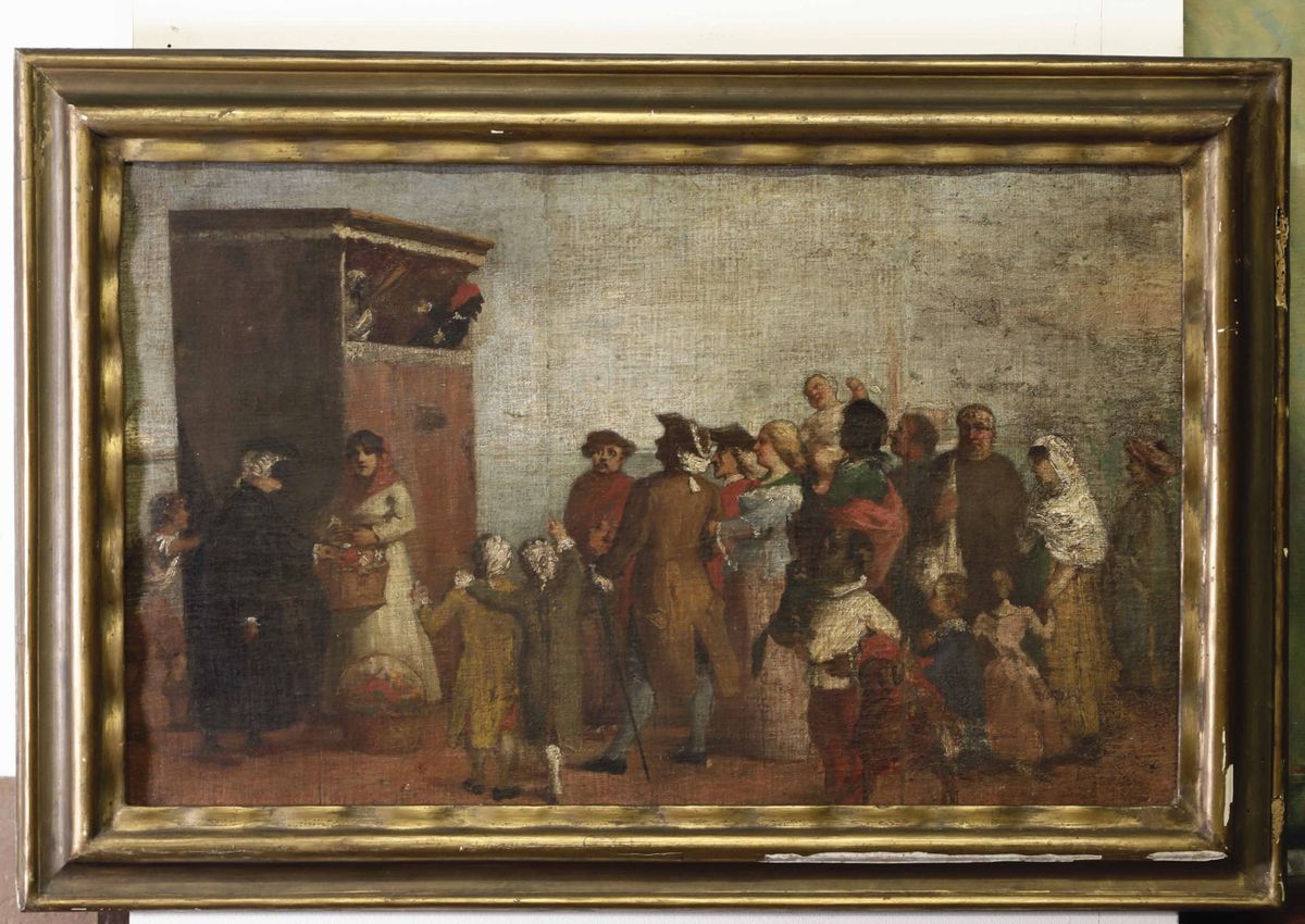 pittore veneto del XIX spettacolo marionette 64x39cm