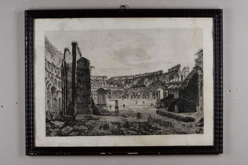Luigi Rossini Veduta del grande interno del anfiteatro Flavio detto anche Colosseo e Veduta della strada antica fuori dalla [..]