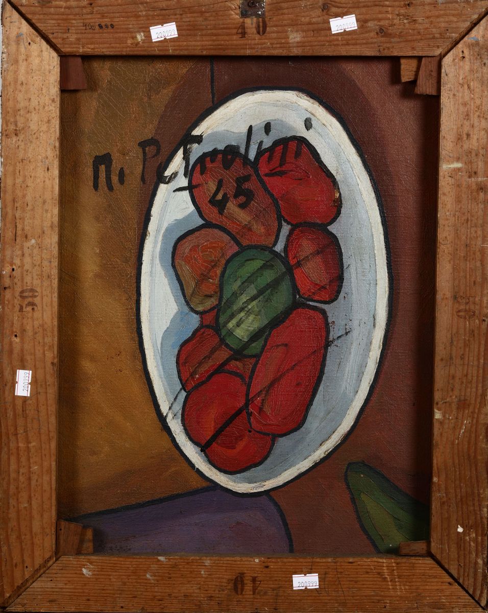 olio su tavola, cm 50x40, firmato e datato ’45 in basso a destra