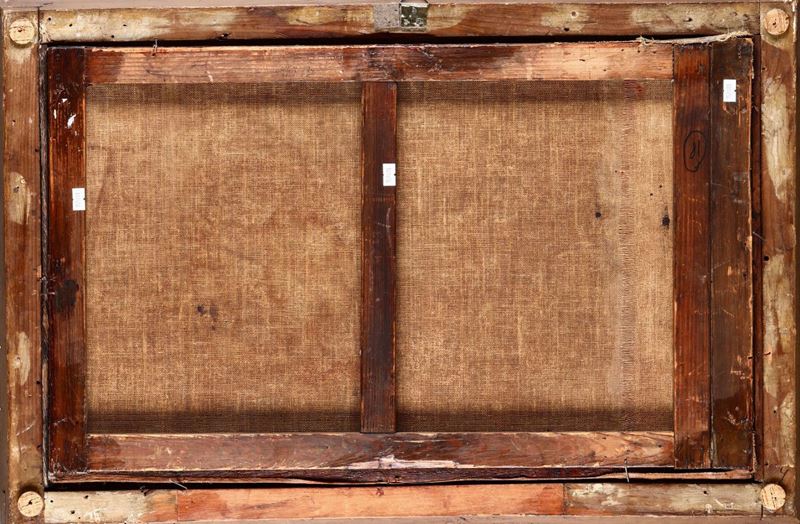 Scuola italiana del XIX secolo Scena con ristoro campestre di soldati in divisa rossa e cavalli