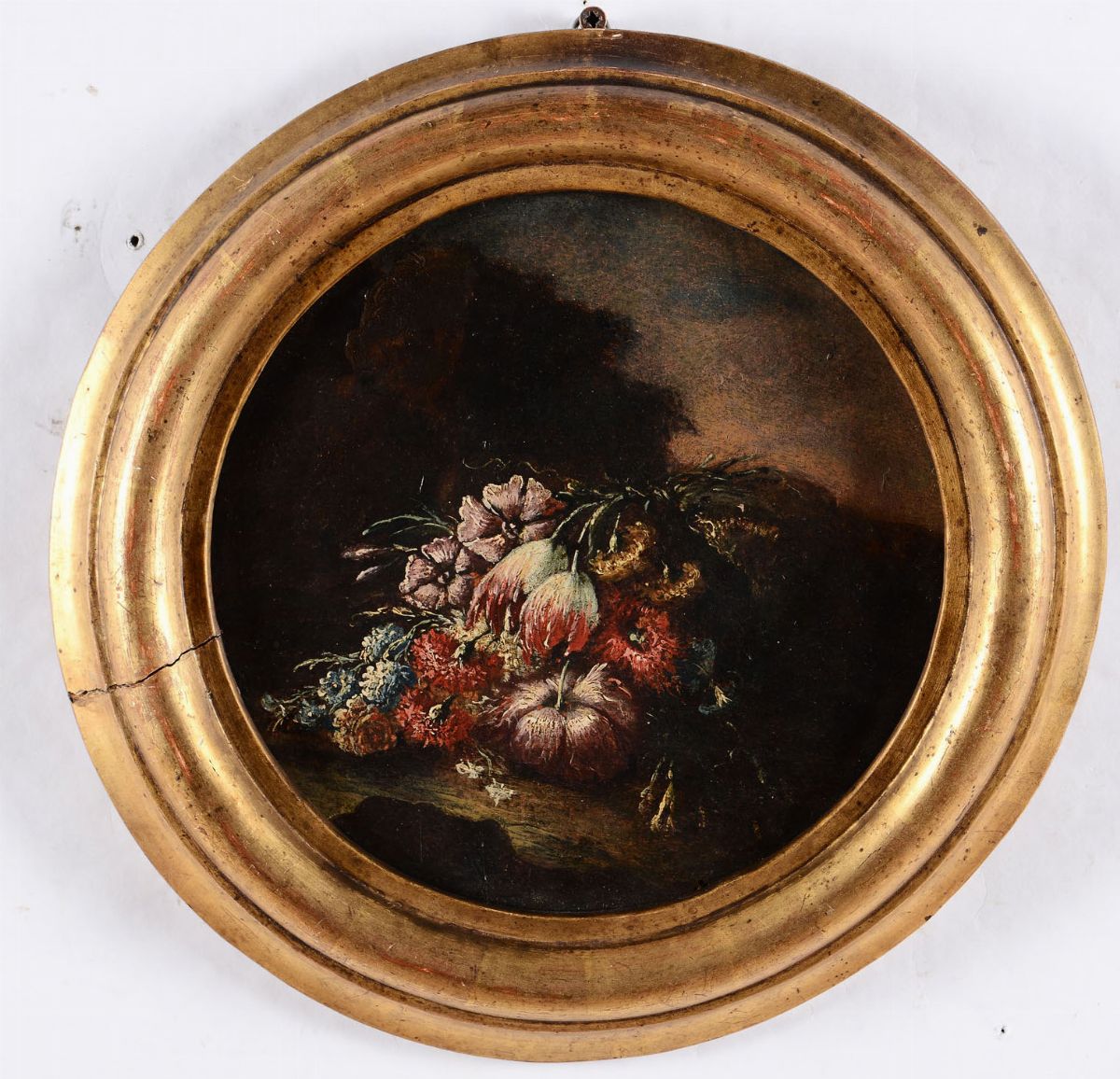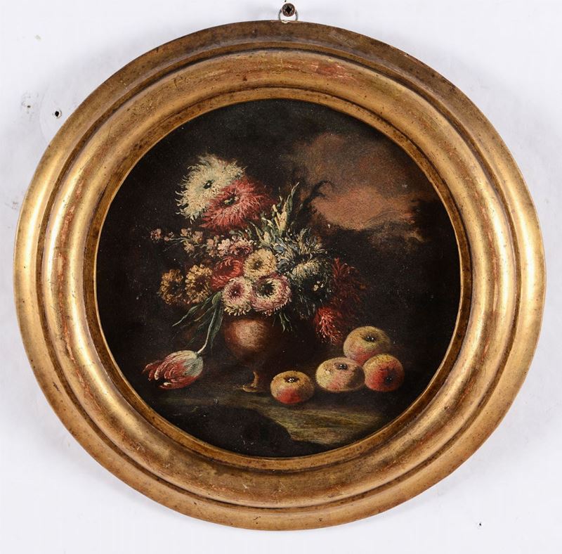 Baldassarre De Caro (Napoli 1689-1750), attribuito a Natura morta con vaso di fiori e frutta