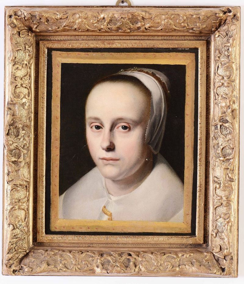 Cornelis Jacobsz Delff (Gouda 1570 - Delft 1643), ambito di Ritratto di dama