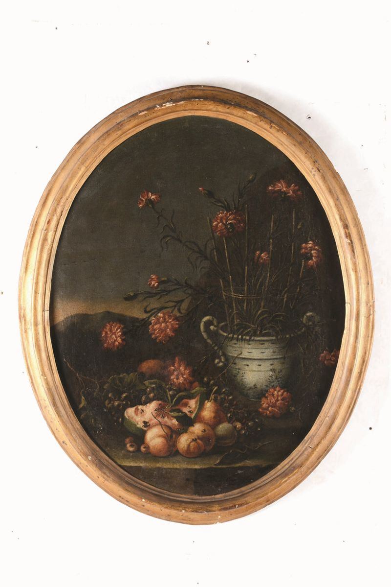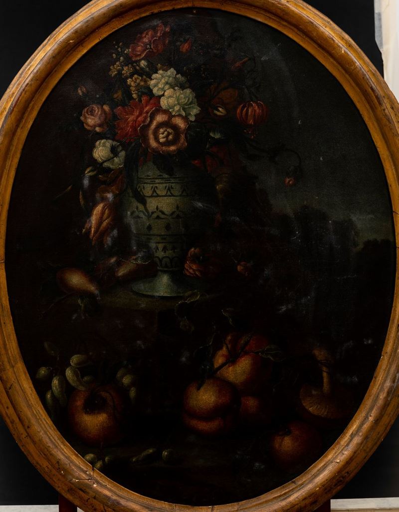 Felice Rubbiani (Modena 1677 - Villa San Pancrazio 1752), attribuito a Natura morta con vasi di fiori e frutti