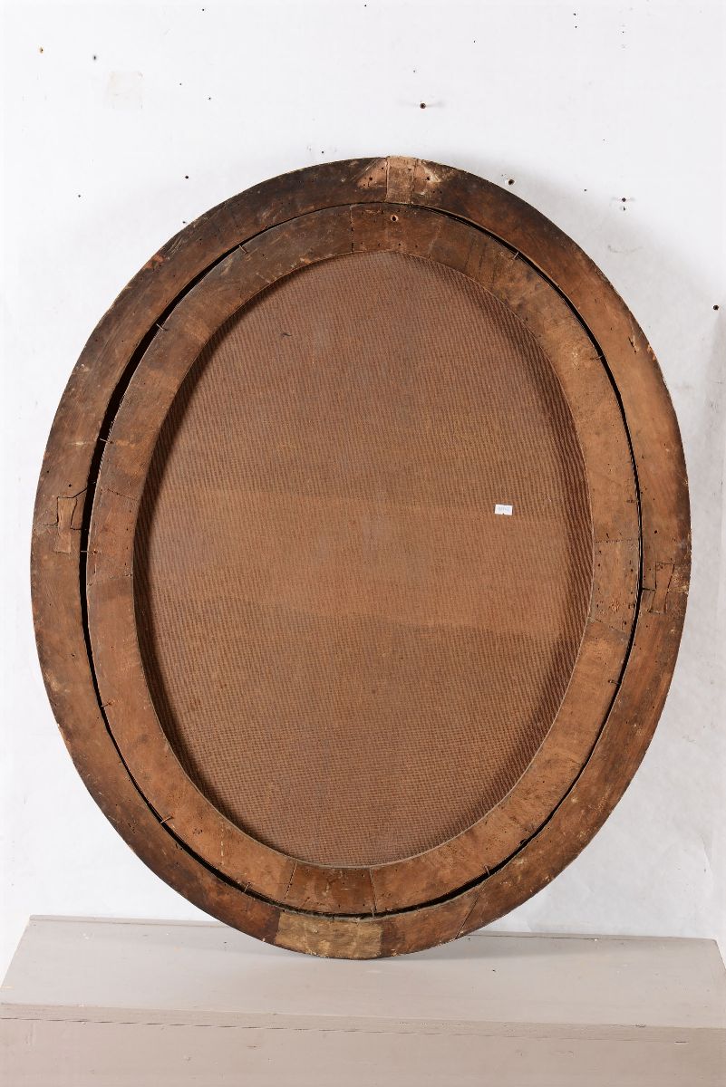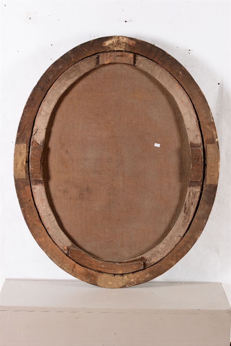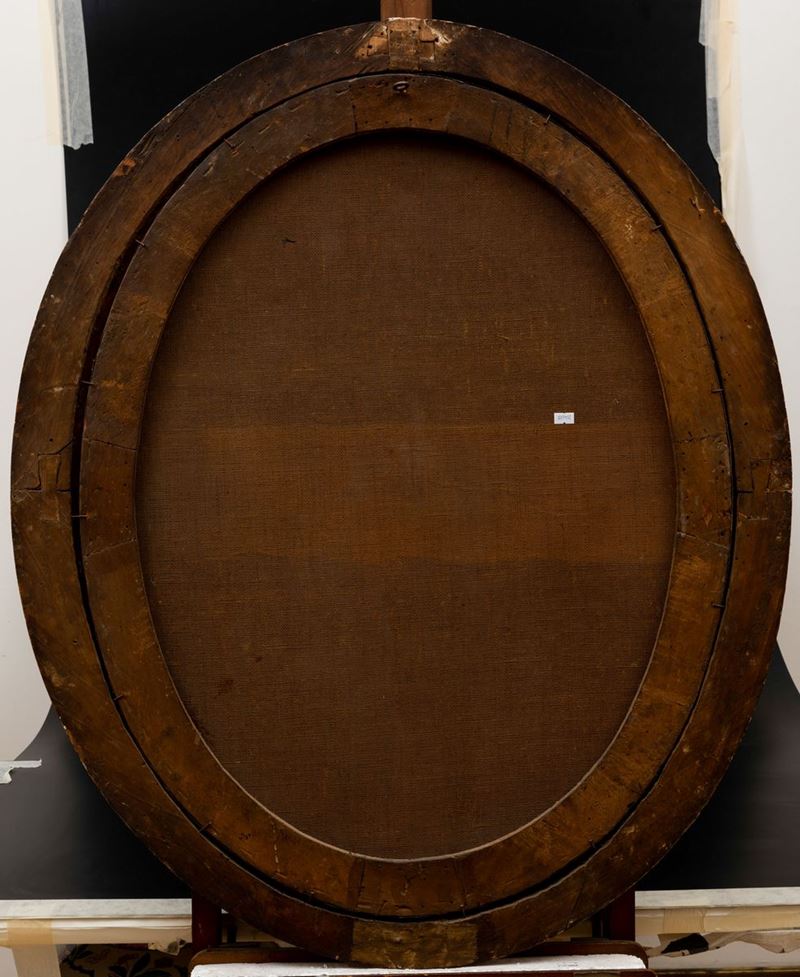 coppia di dipinti ad olio su tela ovale, cm 88x70