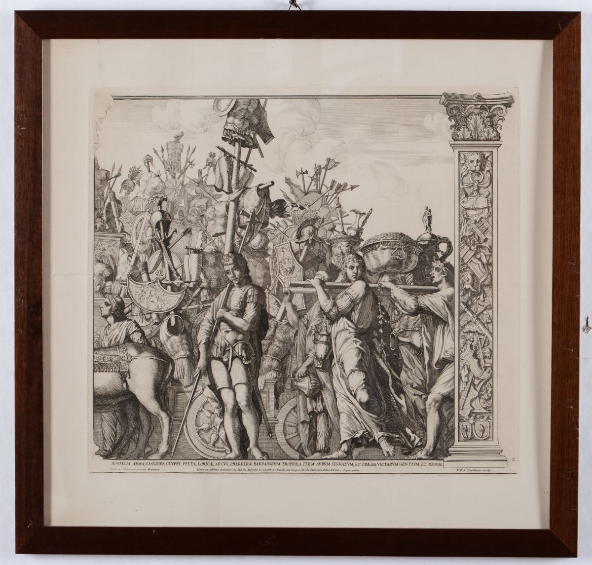 tre acquaforti al bulino appartenenti al trionfo di Cesare, cm 44x40