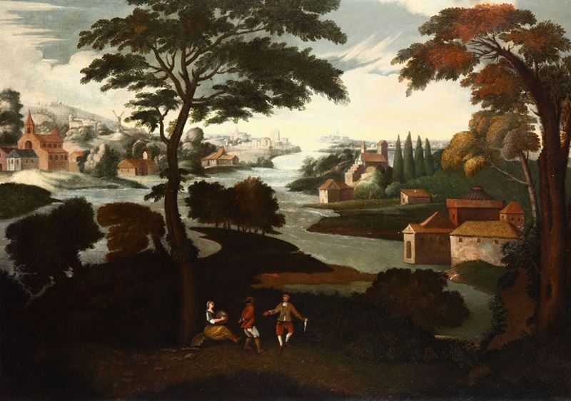 Scuola fiamminga del XVIII secolo Concerto all'aperto