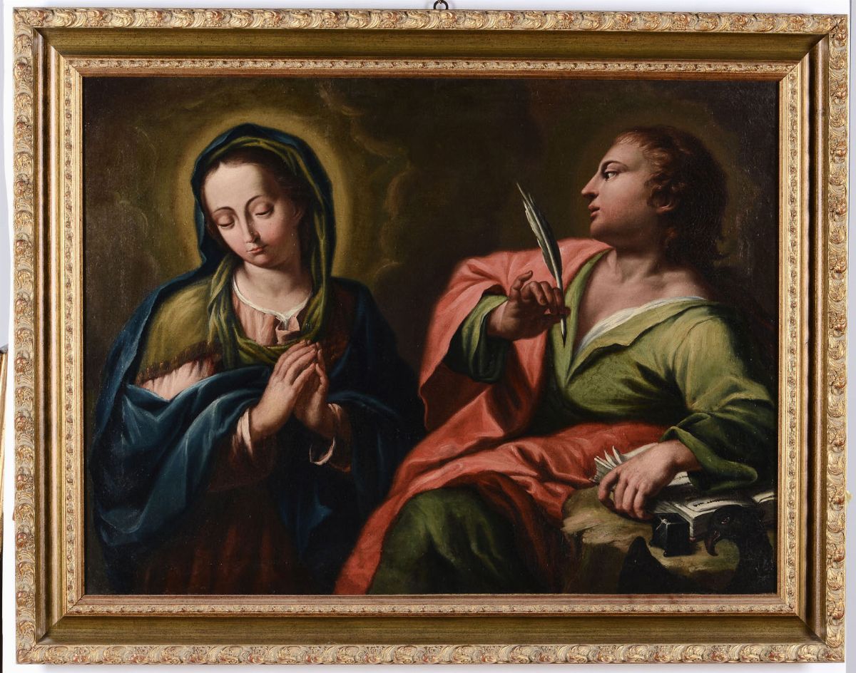 Scuola italiana del XVIII secolo Madonna con San Giovanni evangelista