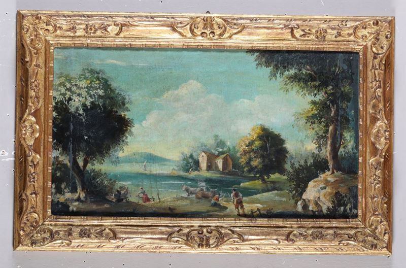 Scuola veneta del XVIII-XIX secolo Paesaggi con figure e architetture