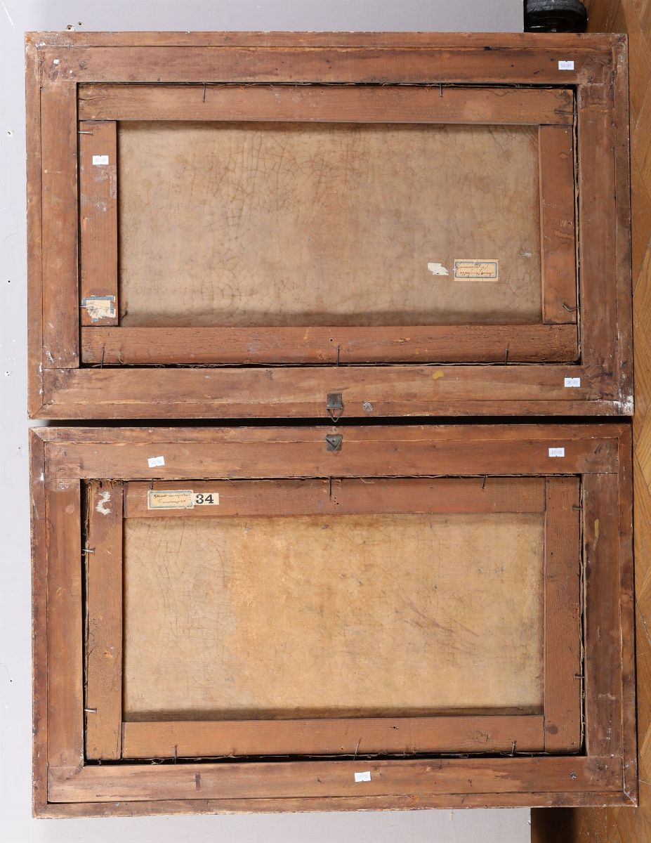 coppia di dipinti a olio su tela, cm 37,5x67 entro cornice dorata