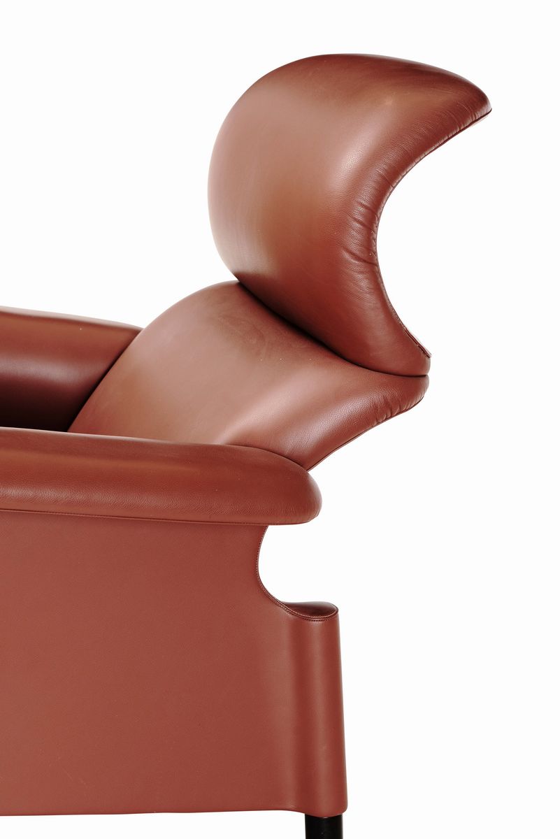Poltrona mod. Sanluca con struttura e sostegni in legno e rivestimento in pelle.