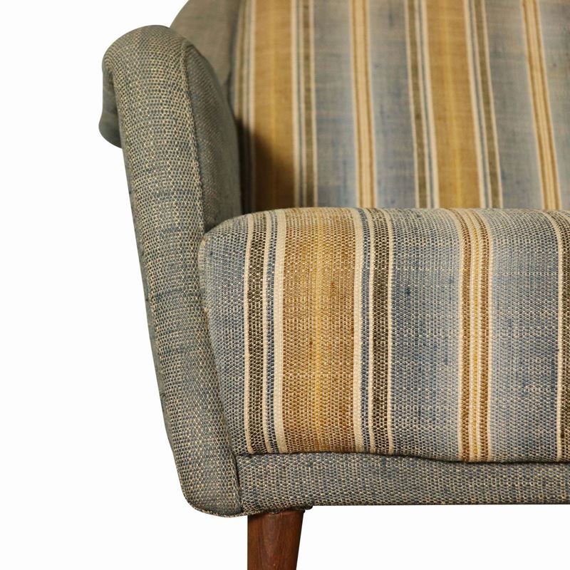 Divano con struttura e sostegni in legno e rivestimento in tessuto.