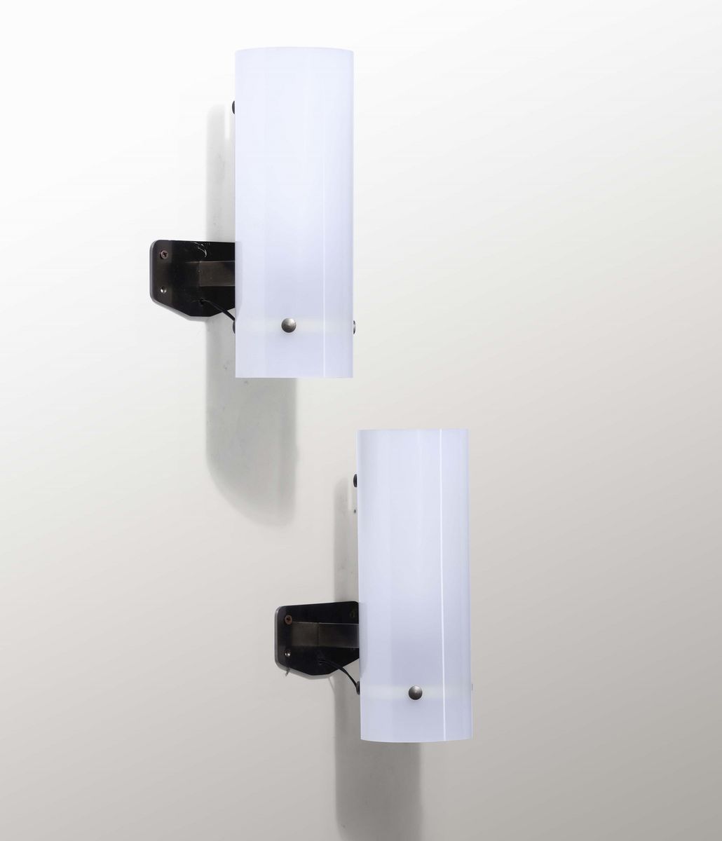 Due appliques con struttura in metallo e diffusore in plexiglass.