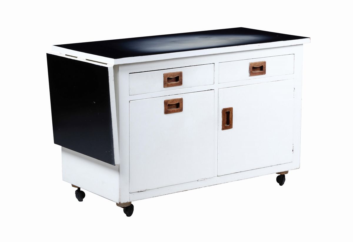 Mobile di servizio con struttura in legno e maniglie in ottone.