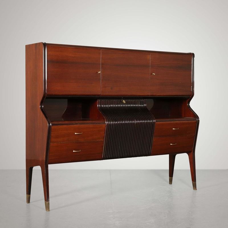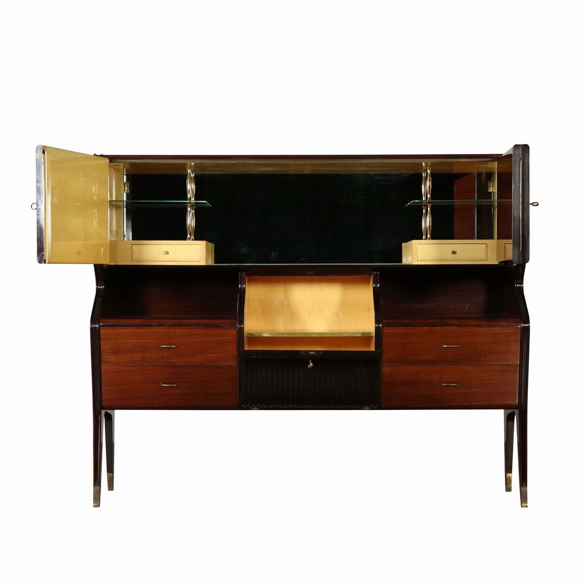 Mobile contenitore con struttura in legno e legno ebanizzato. Puntali e dettagli in ottone.