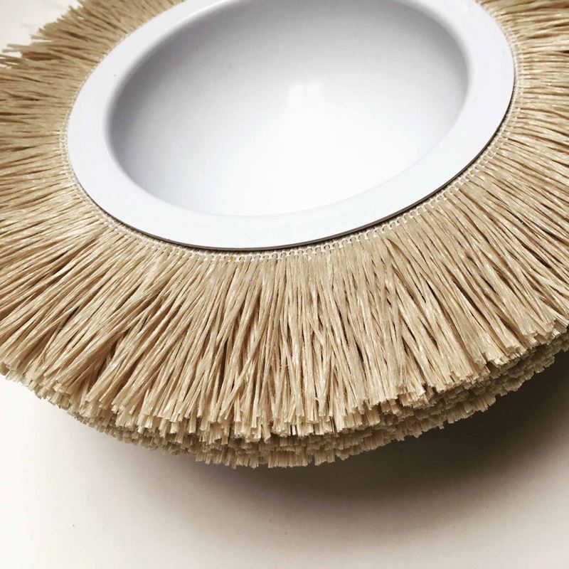 Aluminum bowl piante in white lacquer, that have its outer surface covered with nylon material discarded from industrial carpet edges
