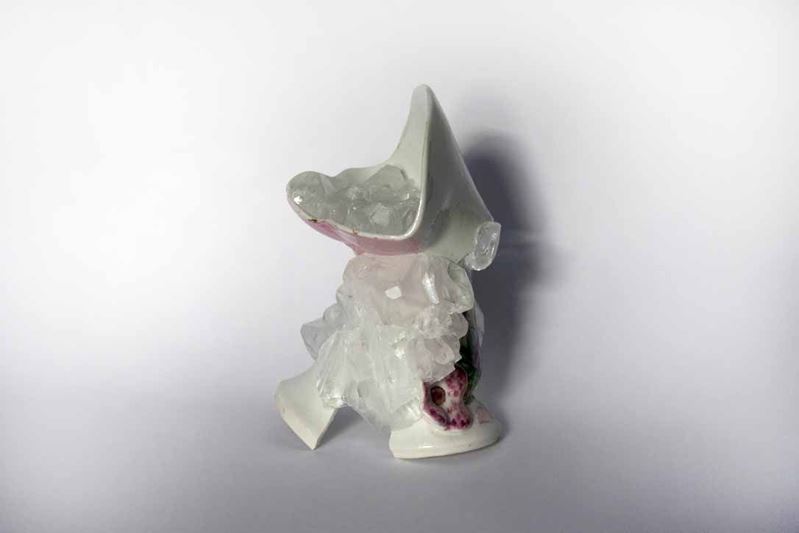 The Crystallization Vases are a series of ceramic pieces where each deliberate crack is fastened back together with homegrown crystals, celebrating the value of a blemish. This vase came from Schloss Hollenegg: quaint, worn and old-fashioned, it had been discarded and stored away. Wegwerth has given it a new life.