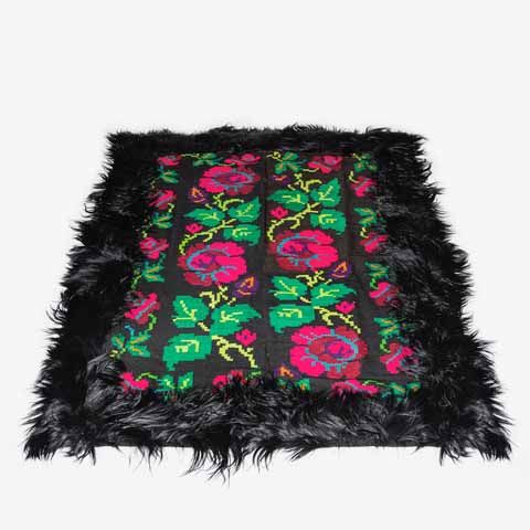 Handwoven Gypsi Carpet (1930), recycled Vibram Rubber, Mongolia Fur