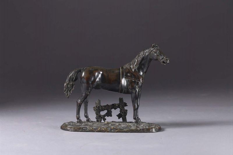 Anonimo austriaco del XIX secolo Cavallo con finimenti accanto ad una siepe