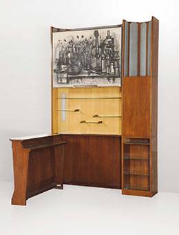 Mobile bar in legno laminato con elemento contenitore in acciaio. Prototipo su misura per casa Willy Rizzo. Provenienza: collezione Elsa Martinelli e Willy Rizzo. Prod. Italia, 1966 cm 90x45x75