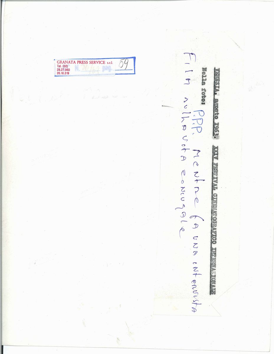Pier Paolo Pasolini mentre fa un’intervista. Venezia, agosto, 1963 - XXIV Festival Cinematografico Internazionale