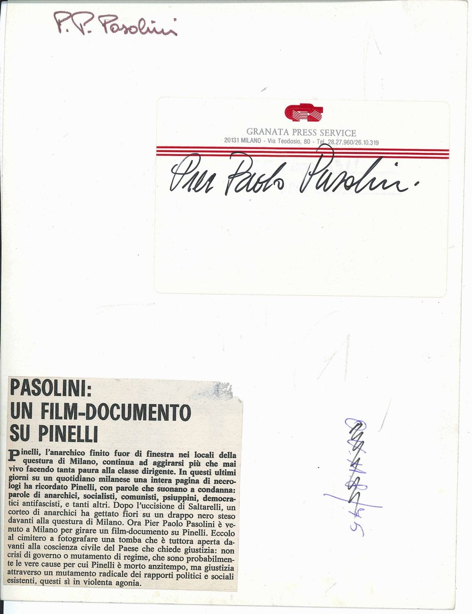 Pier Paolo Pasolini, un film documento su Pinelli