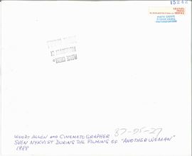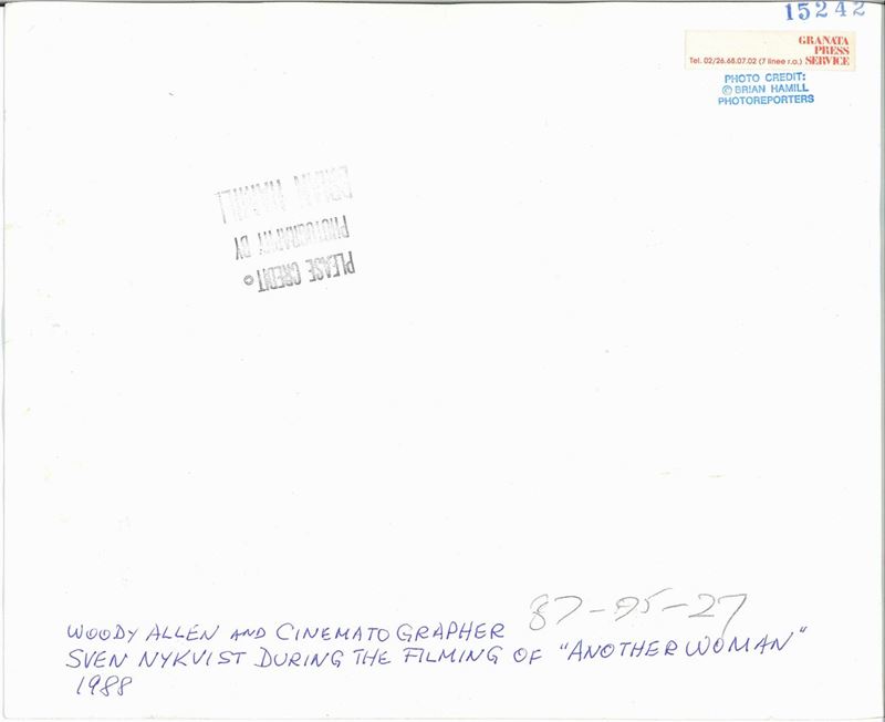 Woody Allen con Sven Nykvist durante le riprese del film “Another woman”, 1988