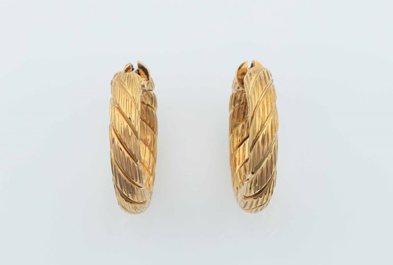 Pair of gold earrings and a gold and ruby ring