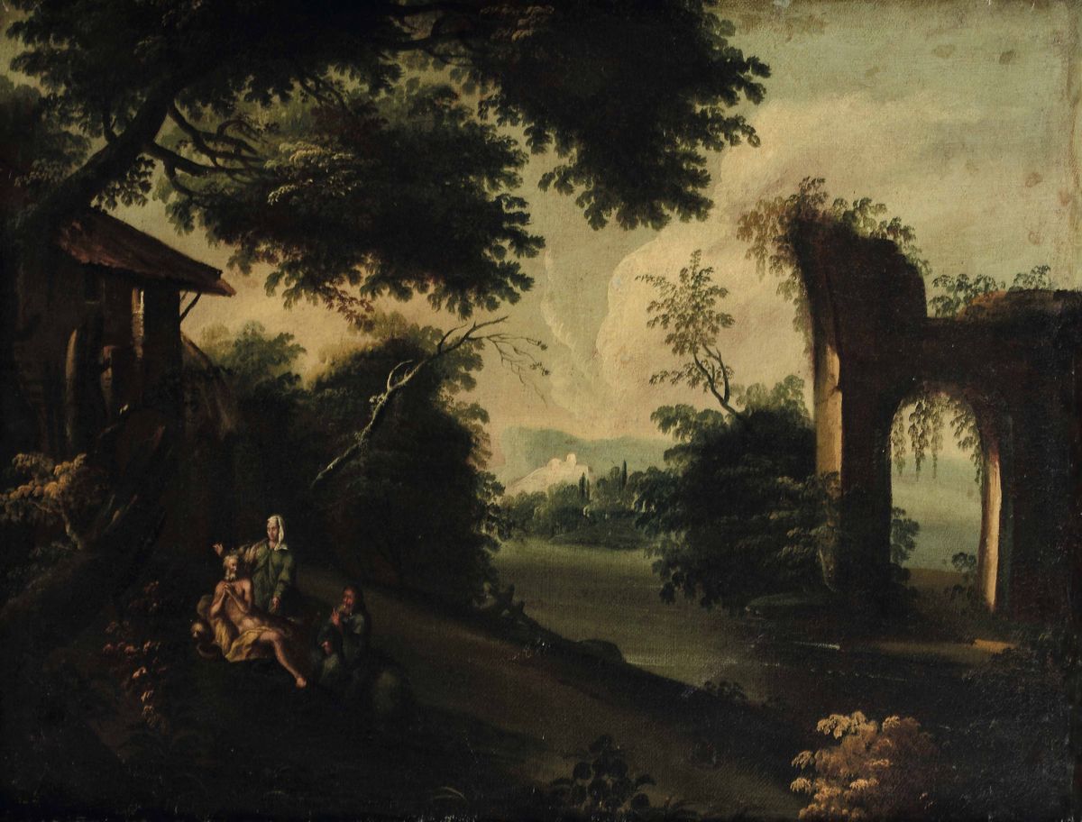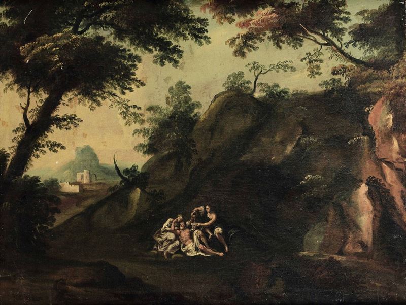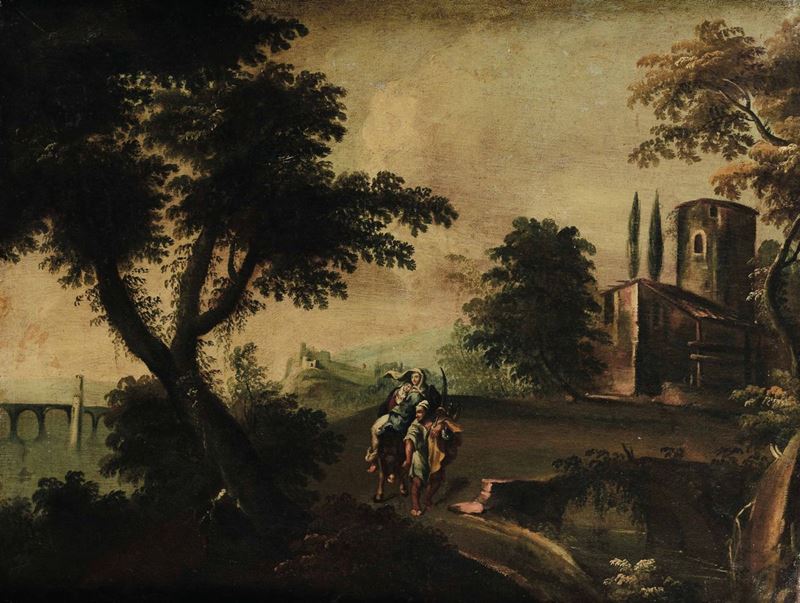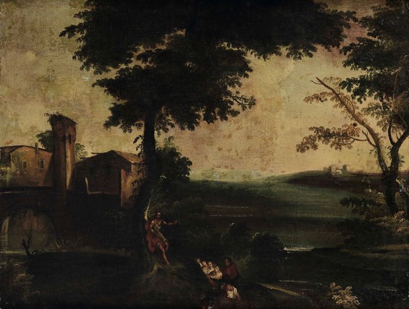 Scuola del XVIII secolo La fuga in Egitto Loth e le figlie