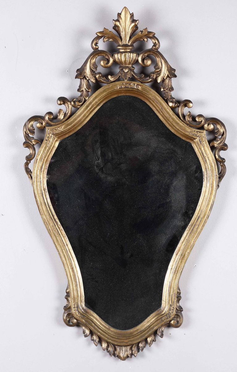 Lotto composto da due sedie e una specchiera