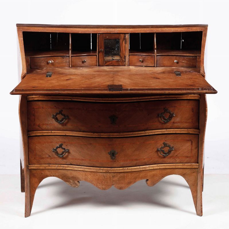 Ribalta a tre cassetti lastronata e filettata, XIX secolo