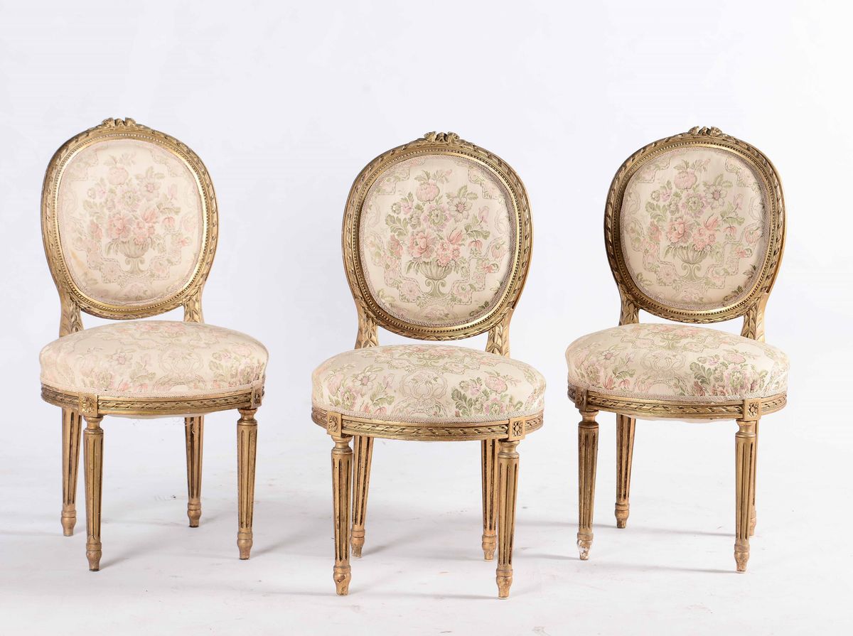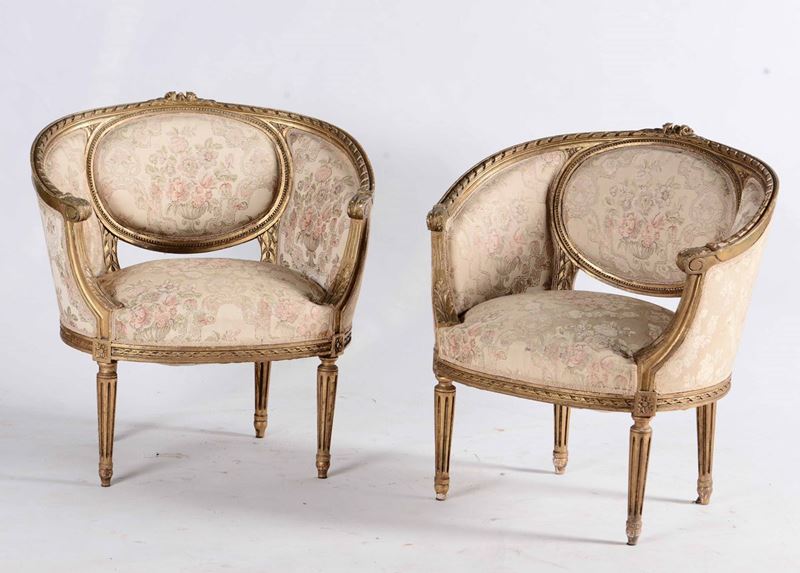 Salotto in stile Luigi XVI in legno intagliato e dorato, XX secolo