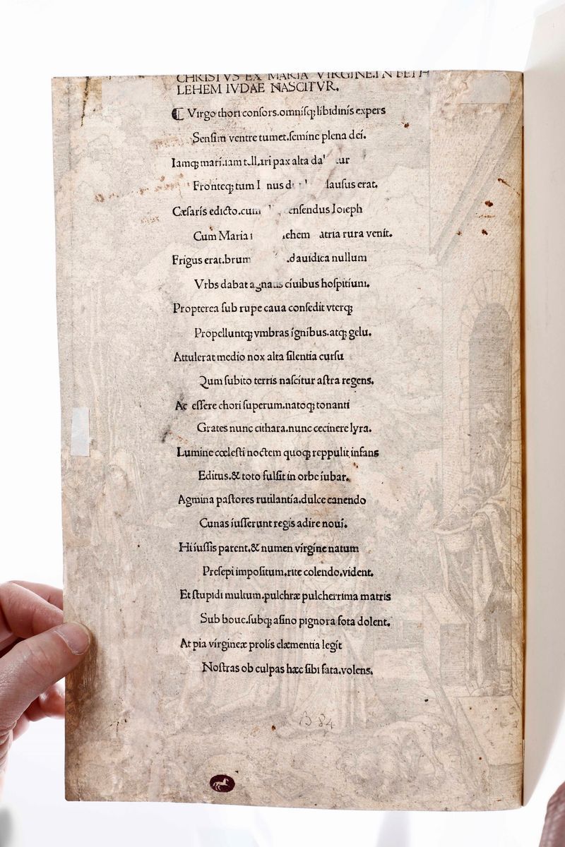 mm 299 x 209. Bartsch 84 (132). Xilografia. Edizione con testo latino al verso. Timbro di collezione Langmaak (Amburgi) Lugt supplemento 2801. Piccoli restauri. Rifilato sulla bordura di contorno.