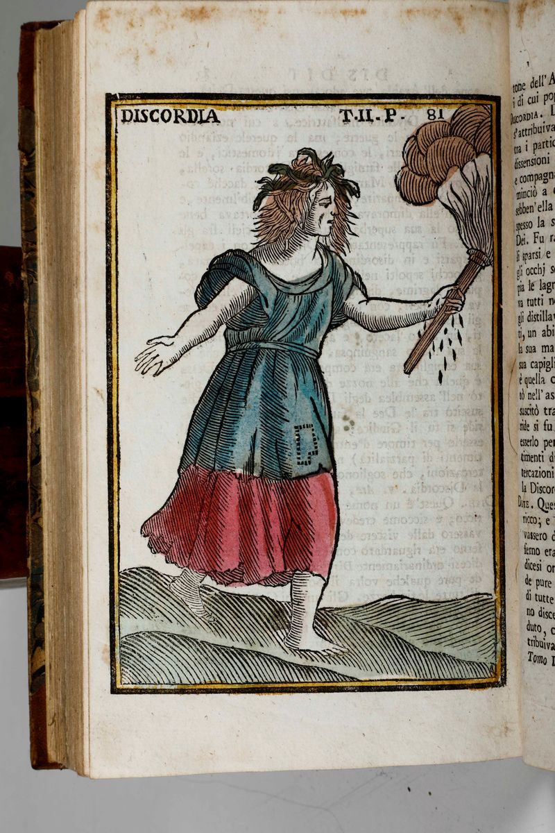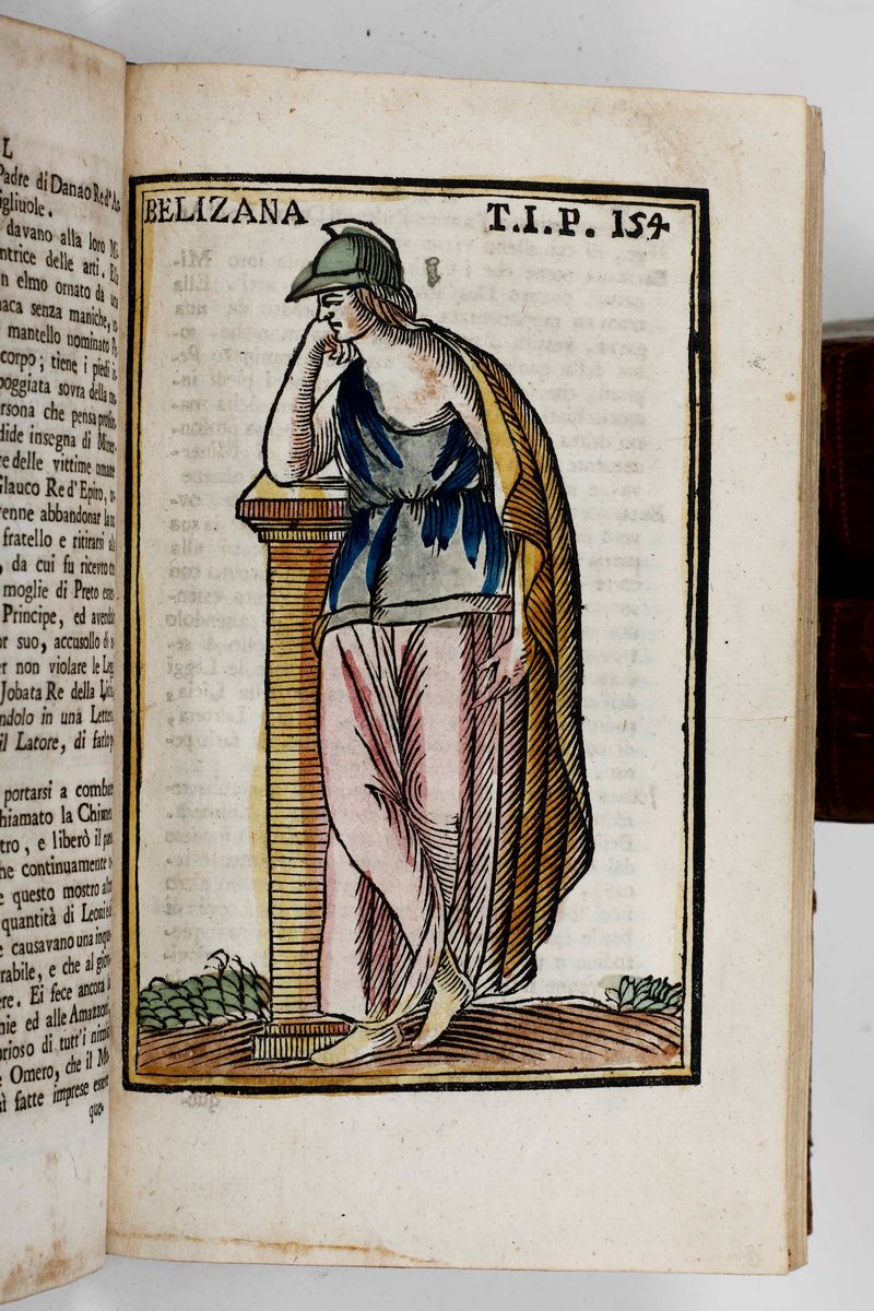 In-8°. Legature antiche in mezza pelle. Sei tomi rilegati in tre volumi. Illustrato da decine di belle tavole xilografiche, alcune della quale in bella coloritura coeva.