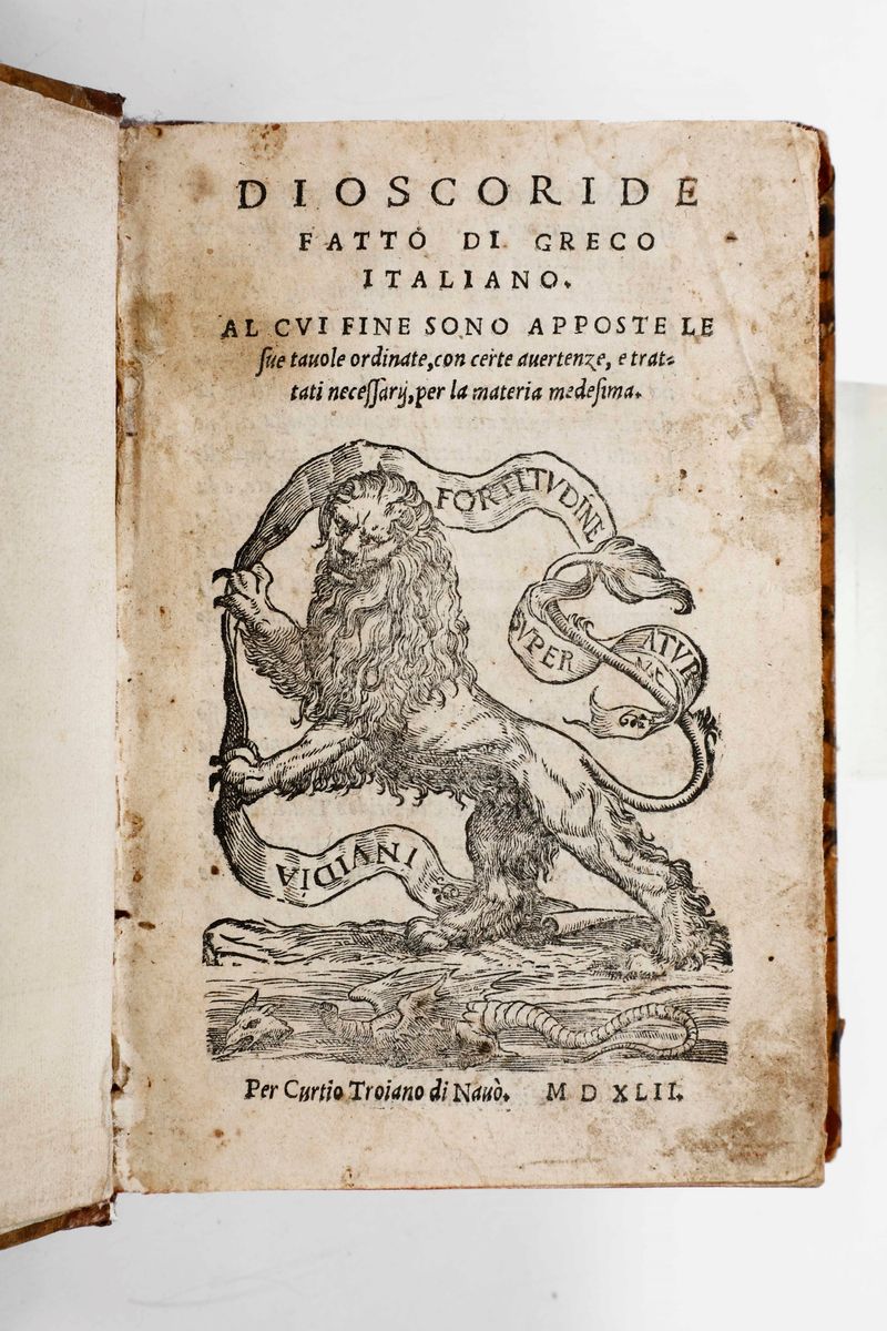 Dioscoride fatto di greco e italiano... Venezia per Curzio Troiano di Navò, 1542 (Giovanni dei Farri e fratelli in fine)
