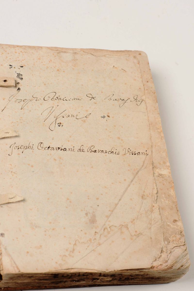 In-4°. Legatura coeva in pergamena floscia parzialmente staccata. Gore e mancanze senza perdita di stampa alle prime e ultime carte.