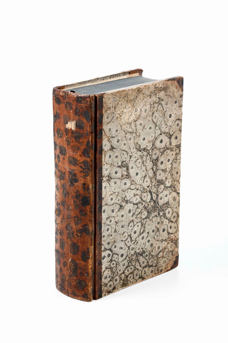 In-folio. Legatura in mezza pelle e punte del secolo XIX. 11 tavole. 968 pp. +35 pp. non numerate. Esemplare modesto, che presenta bruniture strappi e altri difetti. Corto di margini.