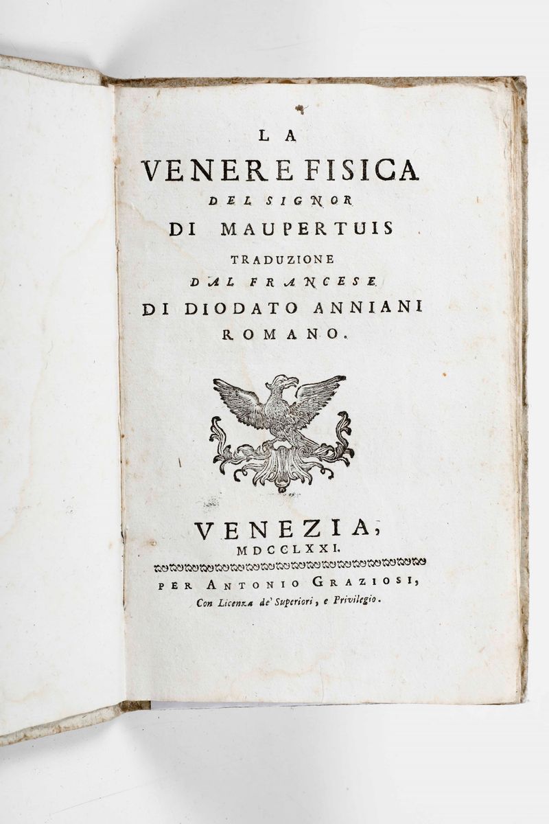 La Vener e fisica del signor di Maupertuis... Venezia per Antonio Graziosi, 1771