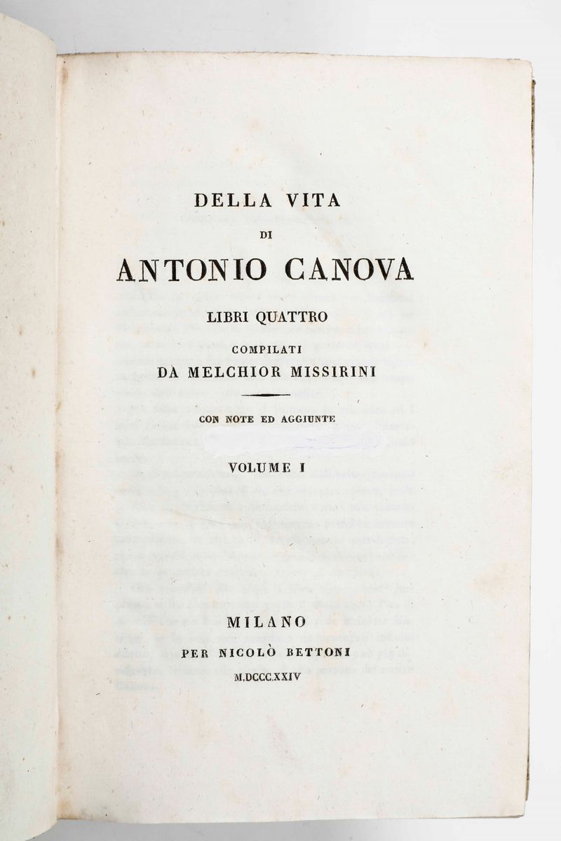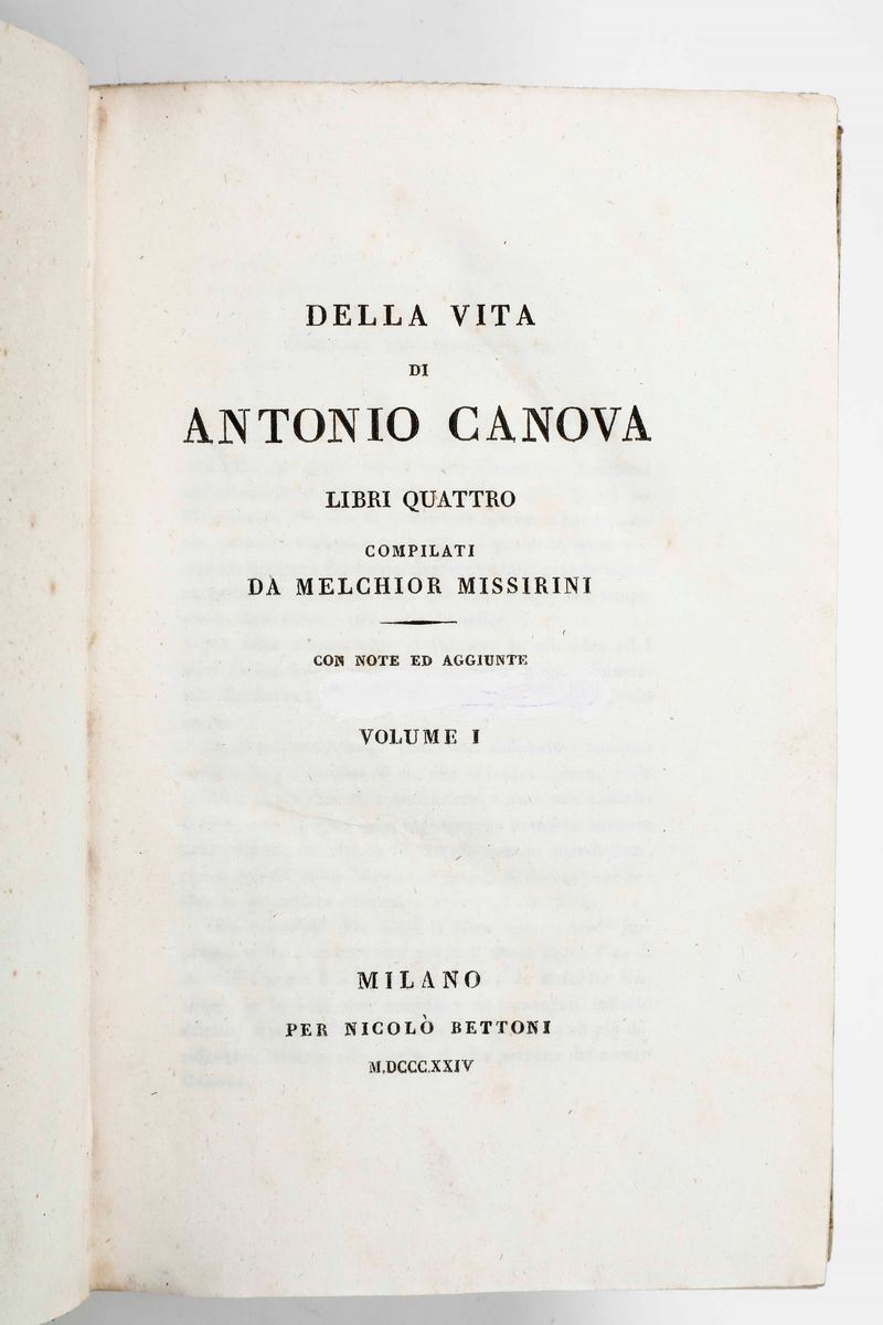 Missirini Melchior Della vita di Antonio Canova... Milano, per Nicolò Bettoni, 1824.
