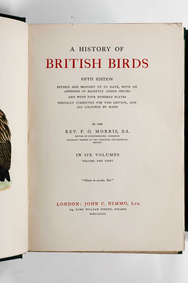 Morris Francis Orpen The History oh the British bird. Quinta edizione. London John C. Nimmo, 1903