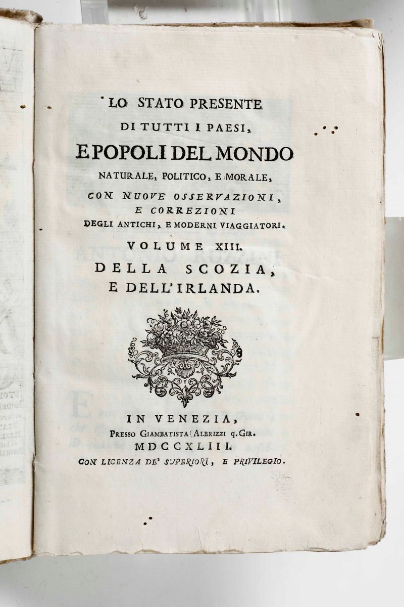 Lo stato presente di tutti i paesi e popoli del mondo (soltanto i volumi 12, 13, 14)... Venezia, Albrizzi, 1743-1745.