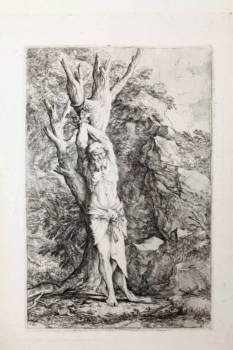 cm 34,5x23. Acquaforte e punta secca. Rifilatura ai margini della parte incisa. Firmato sulla lastra in basso a destra. Al lotto si aggiunge un'altra incisione: foglio 44,8x32,5; lastra cm 34,5x23. Firmato in basso a sinistra.