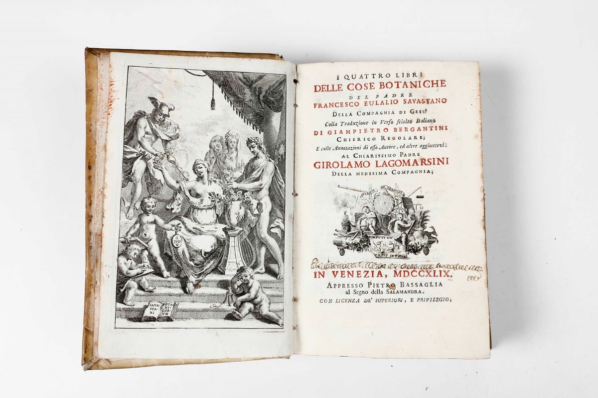 Savastano Francesco Eulalio Delle cose botaniche... in Venezia, presso Pietro Bassaglia, 1749.